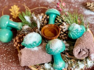 Ce soin est couplé avec diverses manœuvres spécifiques prodiguées au moyen de petites faïences originales chauffées au bain-marie qui distilleront une douce chaleur afin de décontracter et stimuler les muscles. Durant l’application, ces douces sphères qui font penser aux bolets des forêts alentours permettent de ressentir des sensations différentes à la fois décontractantes et stimulantes grâce à leurs formes.